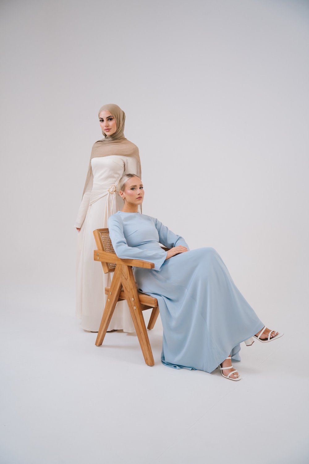 Timeless in form and graceful in detail, the Cyrielle Moss Gown is crafted from 100% pure Tencel in a soft, earthy moss tone. The fabric is exceptionally delicate, naturally textured, and wrinkle-resistant, offering a clean, polished drape with every step.